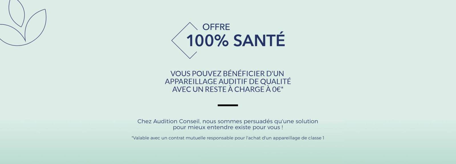 Les appareils auditifs 100 % santé également appelé "Classe 1" sont des aides auditives totalement remboursées par la Sécurité Sociale et la mutuelle. Il vous restera rien à charge !